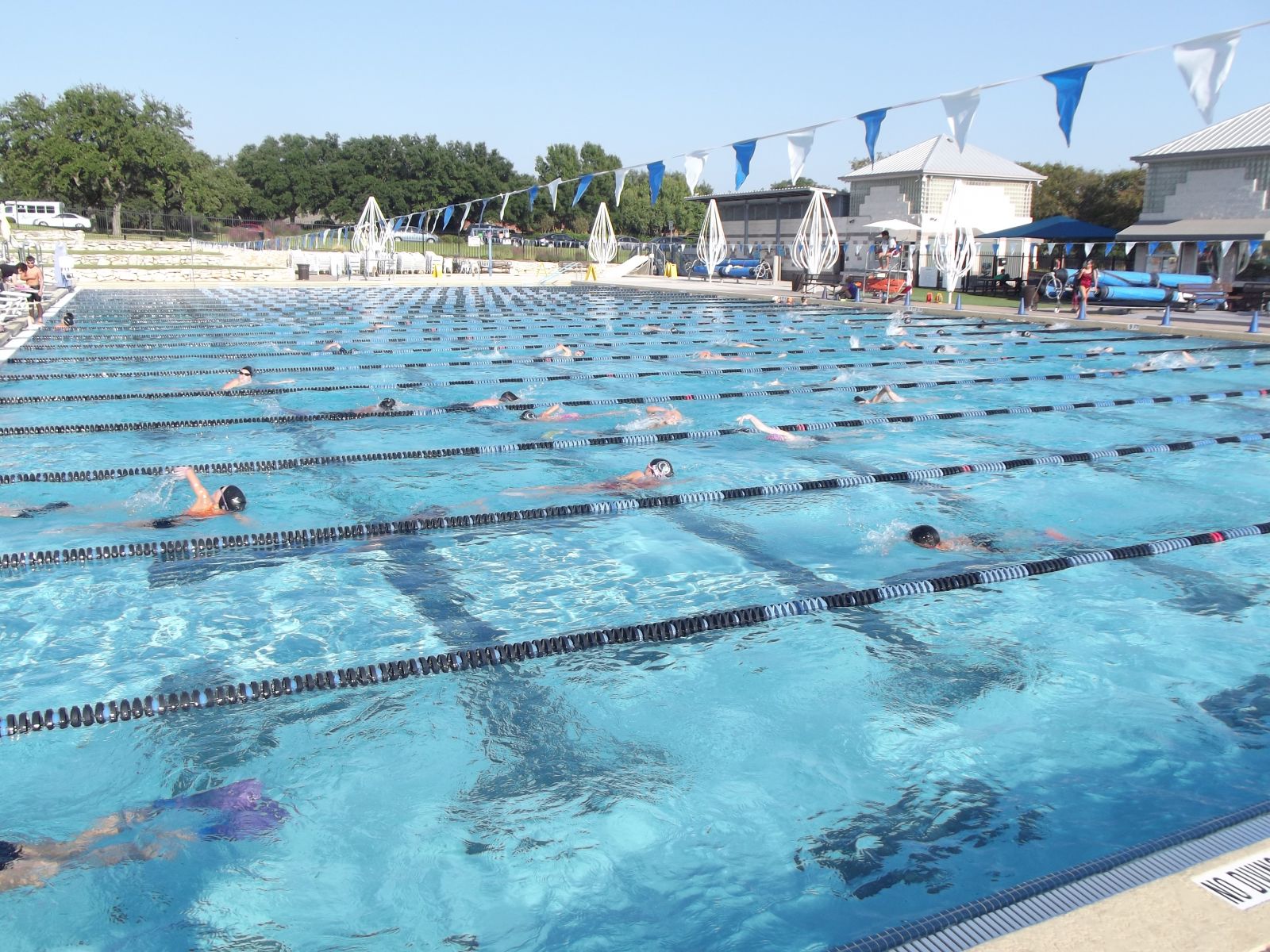 Our team practices at a heated, outdoor Olympic sized pool. It has 20 lap lanes which we convert to Long Course laps two days per week during Long Course Season. The pool is chlorinated using a state of the art MIOX system, transforming salt into a more gentle but effective form of chlorine, drastically reducing irritation caused by long swim trainings.